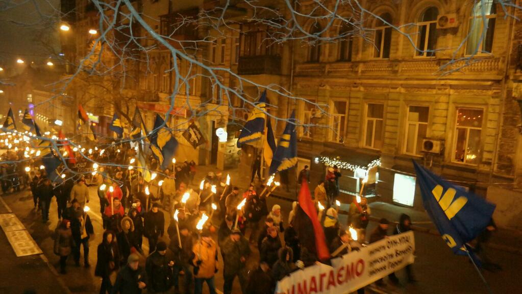 Дійство розпочалося ходою із запаленими факелами. Колону очолив лідер ВО "Свобода" Олег Тягнибок, а також народні депутати Андрій Іллєнко та Ігор Мірошниченко.