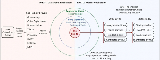 Недавній звіт Проєкту кіберзахисту Центру досліджень безпеки (CSS) при Вищій технічній школі Цюріха під назвою "До Вегаса: "Червоні хакери", які сформували кіберекосистему Китаю" відображає цю еволюцію. Він зосереджується на сорока впливових постатях, яких називають "Червоною сороківкою", і простежує, як неформальні таланти поступово вливалися в тісно інтегровану екосистему, де неформальні мережі, приватні підприємства та державні інтереси перетинаються через поєднання експериментів на низовому рівні, стратегічного узгодження та посилення інституційного контролю.