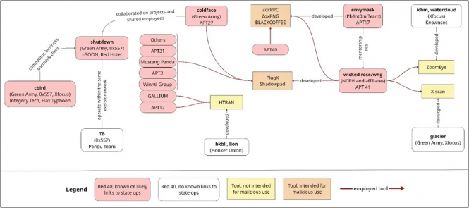 Нарешті, багато членів Red 40, які брали участь у державних операціях, були особисто знайомі між собою і підтримували давні професійні та неформальні мережі, які допомогли сформувати спосіб обміну талантами та інструментами між китайськими групами APT.