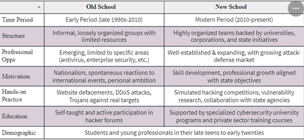Ці операції були як наступальними, так і оборонними, надаючи практичний досвід у реальних умовах у той час, коли екосистема кібербезпеки Китаю ще перебувала на початковому етапі розвитку, а офіційні програми навчання були обмеженими. Університети пропонували небагато спеціалізованих програм, а такі механізми, як змагання "Захопи прапор" (імітовані виклики з кібербезпеки, де учасники застосовують наступальні та оборонні навички, такі як використання вразливостей, зворотна інженерія або криптографія, для вирішення проблем і пошуку прихованих "прапорів" для отримання очок) або платформи винагород за виявлення помилок (структуровані ініціативи, де організації запрошують дослідників у галузі безпеки виявляти та відповідально розкривати вразливості в своїх системах, пропонуючи фінансову винагороду за дійсні знахідки) залишалися на початковому етапі протягом 2000-х років і набули популярності лише на початку 2010-х. Цю прогалину заповнили групи червоних хакерів. Самоорганізовані та технічно підковані, вони розвивали свої навички методом проб і помилок – часто досліджуючи реальні цілі, керуючись переконанням, що оволодіння наступальними техніками є необхідним для ефективної оборони.