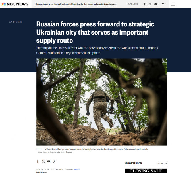 "У міру того, як російська армія наближається до стратегічно важливого міста Покровськ на сході України, дедалі помітнішою стає зростаюча нестача людських ресурсів у Києва. Президент України Володимир Зеленський цього тижня заявив, що українські війська на Покровському фронті наразі поступаються чисельно російським силам у вісім разів, що підкреслює масштаб проблеми. Після трьох із половиною років героїчного й надзвичайно кровопролитного спротиву існує побоювання, що Україна може наближатися до точки, коли країні вже не вистачатиме бійців для ефективної оборони всієї довжини фронту у найбільшій для Європи війні від часів Другої світової".