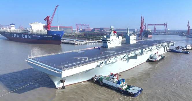 Новий китайський великий десантний корабель. Цього тижня штурмовий корабель Type 076 ВМС Китаю (ВМС НВАК) "Сичуань" розпочав своє перше морське випробування. Новий десантний авіаносець, який містить унікальну електромагнітну катапульту для запуску безпілотних літаків з фіксованим крилом, приблизно такого ж розміру, як LHD класу America ВМС США.