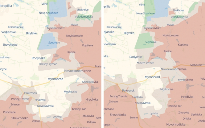 Зміна ситуації навколо Покровська з початку листопада. Карти: DeepState