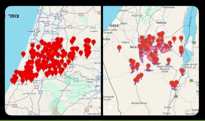Ракетні удари КВІР та Хезболли спричинили численні тривоги в Ізраїлі. На картах, опублікованих місцевою службою цивільної оборони, це виглядало приблизно так.