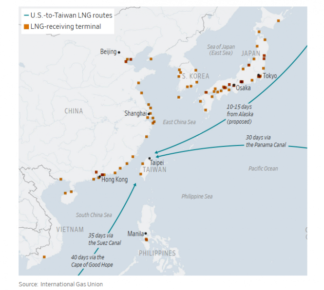 У вересні два американські сенатори внесли законопроєкт, що має підтримати здатність Тайваню забезпечувати надійні поставки американського СПГ, зокрема шляхом надання урядового страхування для судноперевізників, аби поставки тривали навіть за умов загрози острову.