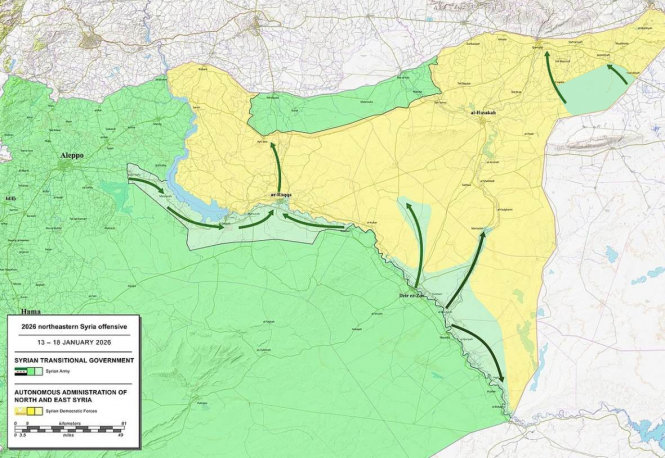 Упродовж 14–17 січня 2025 року контроль курдської терористичної організації PKK – Робітничої партії Курдистану (яка діє в Сирії під новою назвою "Сирійські демократичні сили"/SDF) над територіями на захід від Євфрату майже повністю розвалився. Це угруповання насправді є "відгалуженням" турецької PKK, яку США та ЄС офіційно визнали терористичною організацією. Щоб обійти власні обмеження щодо співпраці з терористичними організаціями, Пентагон у 2014 році односторонньо "порадив" PKK змінити назву на SDF, пояснюючи це тим, що вони нібито є найефективнішою силою проти ІДІЛ. Насправді PKK традиційно співпрацювала з режимом Асада, а у 2014–2015 роках принаймні третина бойовиків ІДІЛ була курського походження, переважно з Іраку.