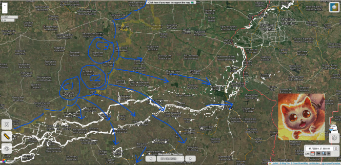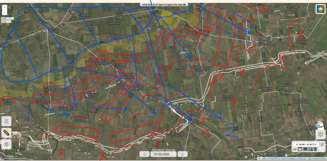 Неохайна, дуже груба схема гіпотетичного прориву багатошарової оборони орків поблизу Гуляйполя. Квадрати з крапками позначають мінні поля, дуги – райони з бойовими позиціями, що їх захищають, а X – розгортання артилерії та дронів. Якщо план спрацює, це займе максимум тиждень боїв.