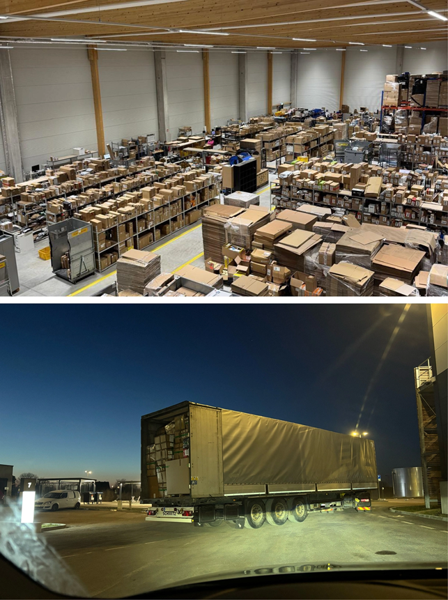 Згідно з даними трекінгових пристроїв, посилки провели на складі кілька днів, після чого їх завантажили на 40-тонні вантажівки, які щодня вирушають із поштою. Потім вони рушили до польського кордону через німецьке місто Франкфурт-на-Одері. Без тривалих зупинок 40-тонні вантажівки перетнули Польщу автомагістраллю А2, минувши Варшаву. Через два дні після виїзду з Берліна вони наблизилися до східного кордону Європейського Союзу.