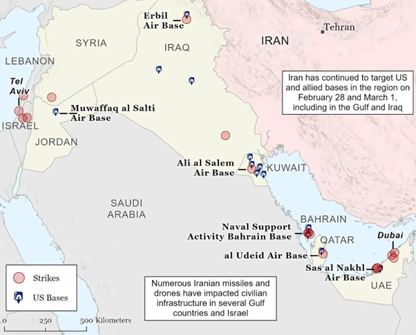 Карта заходів відплати Ірану. Джерело: Інститут вивчення війни