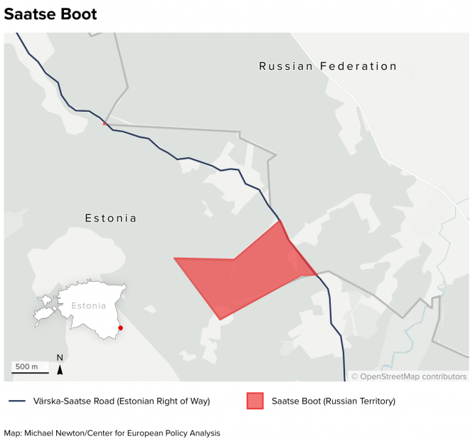 Густий ліс "Саатсеського чобота" різко, але без жодного практичного сенсу виступає на територію Естонії. Подовжений вигин перетинає тиха одноколійна дорога завдовжки близько 800 м, яка не з'єднана з російською дорожньою мережею. Єдина причина користуватися цією дорогою – дістатися з однієї частини Естонії в іншу. У нормальні часи (і з нормальним сусідом) це було б невинним географічним дивацтвом, одним із багатьох на подекуди химерно прокладених кордонах Європи. Прикордонний договір, підписаний 2014 року, але так і не ратифікований, мав упорядкувати це разом з іншою невеликою аномалією шляхом обміну ділянками землі.