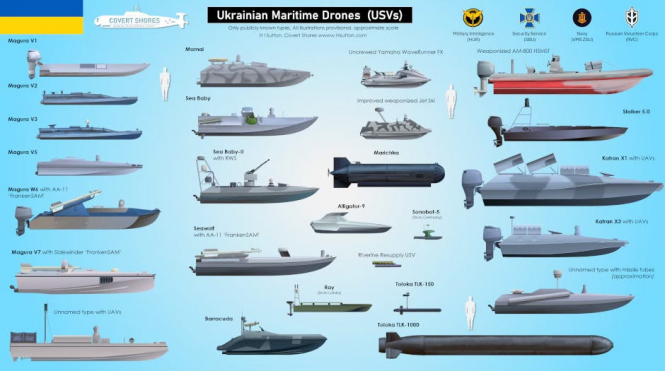 Безпілотні морські системи України. Минулого тижня військово-морський експерт H. I. Sutton опублікував оновлену інформацію про безпілотні морські системи, які Україна розробила і використовує для атак на росіян з 2022 року. Як зазначає автор оновлення:
