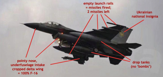 Для авіаентузіастів, а також для військових фахівців (принаймні тих, хто добре розпізнає літаки; що зовсім не означає "усіх" військових), це вже: "Нічого собі, український F-16!" Або: "Глянь, чотири пускові рейки порожні, дві AIM-9M ще на ммісці – літак повертається з бойового вильоту!" Або: "Ні, це не бомби, це підвісні паливні баки: контейнери з додатковим пальним, які можна скинути в польоті…"