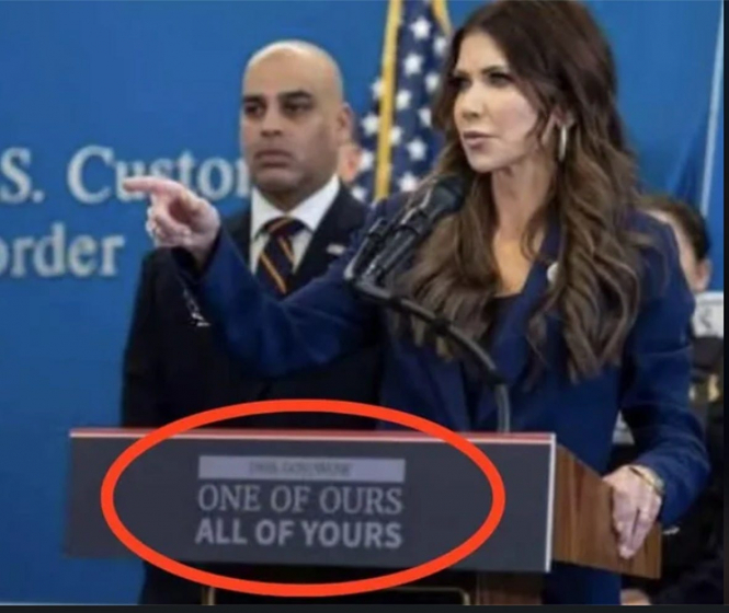 "Мадам секретар ICE" з'являється на трибуні, прикрашеній гаслами італійських фашистів 1920-1930-х років...
