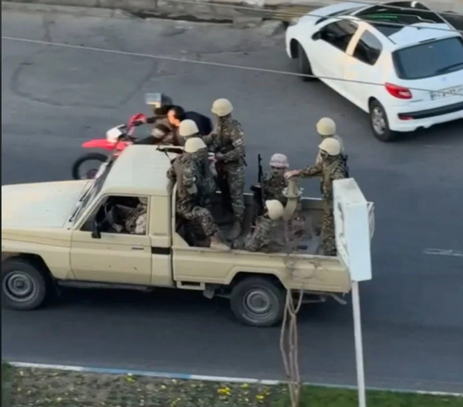 …а через кілька секунд проїхали війська КВІР на "техніці" (виробництва Toyota).