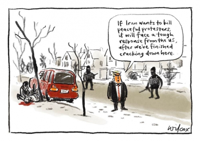 Ба більше, чи повинен король Дамб-Дамб рятувати іранських протестувальників у той час, коли він найкращим чином розбирає те, що залишилося від "демократії" в США після десятиліть систематичної політичної корупції? ... і коли його фашистська ICE не встигає зробити те саме в США?