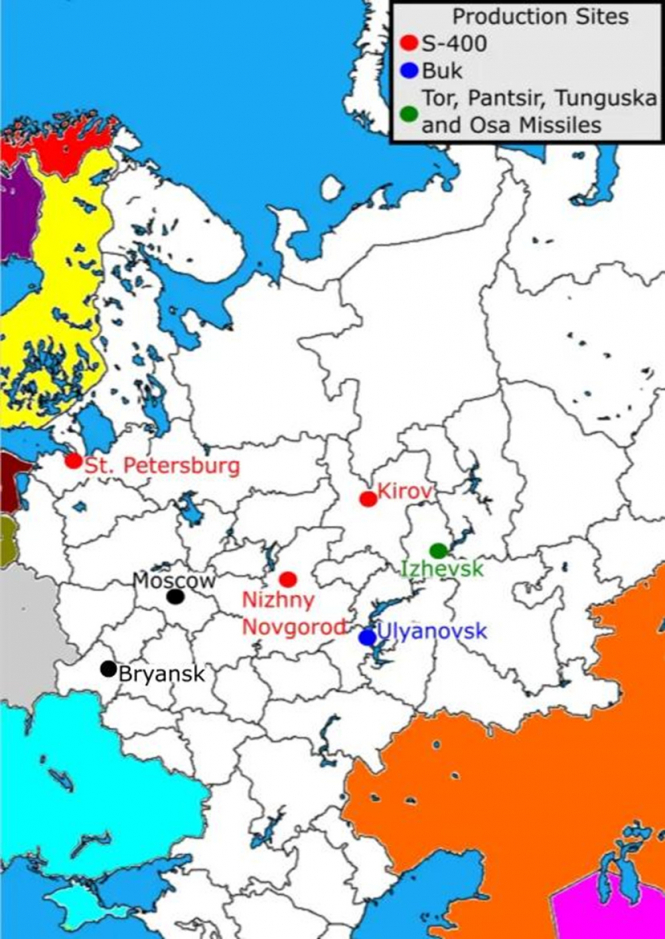 Системи С-400 виробляють на заводі "Авітек" у Кірові, на заводі НМП у Нижньому Новгороді та в Санкт-Петербурзі, де у 2025 році розширили Обухівський завод, щоб збільшити виробництво цих систем і ракет. Системи "Бук" виробляють на Ульяновському механічному заводі. Системи "Тор", "Панцир", "Тунгуска" та ракети до "Оси" виготовляють на ВАТ "Іжевський електромеханічний завод", по якому торік у липні було завдано удару. У Конструкторському бюро приладобудування в Тулі розробляли системи "Панцир" і "Тунгуска", а також ракети до "Тунгуски". По ньому двічі били торік у червні.