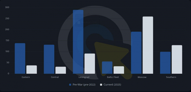 Ці засоби перекидають із військових округів навіть попри те, що у 2024 році на зберіганні були: 91 радар, 678 систем малої дальності, 165 систем середньої дальності та 290 систем великої дальності. До вересня 2025 року з цих баз почали знімати старіші компоненти систем С-300 і відправляти їх в Україну. Радари не вивозили, ймовірно, тому що їх було надто складно повністю відновити, і є підстави вважати, що їх використовували як джерело запасних частин.
