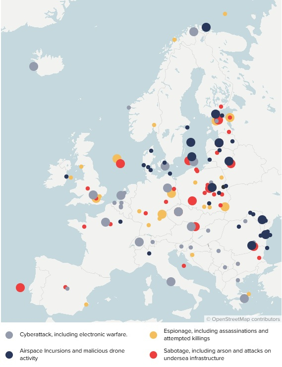 Від початку повномасштабного вторгнення у 2022 році росія систематично поширює свою війну проти України вглиб Європи. Не маючи змоги протистояти союзникам по НАТО та ЄС у звичайний спосіб, москва розгортає розсіяні операції з навмисно прихованим авторством на європейській суші, морі та в повітряному просторі. Їхня мета? Підірвати єдність, готовність і рішучість ЄС/НАТО підтримувати оборону України за допомогою атак, що залишаються трохи нижче порога, який міг би спричинити військову відповідь союзників.