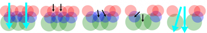 Далекобійні дрони (сині стрілки) зазнавали б великих втрат, пролітаючи крізь щільну, інтегровану протиповітряну оборону. FPV-дрони, артилерія та дрони літакового типу (чорні стрілки) атакують кожен ешелон оборони, доки не пробивають його, створюючи коридор, у якому майже немає або зовсім немає засобів ППО, здатних збивати далекобійні дрони.