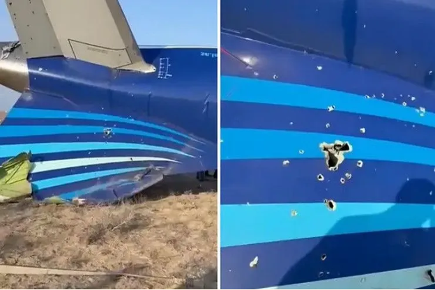 Війна ощасливила російські протиповітряні сили та надала їм можливості діяти, як здається, безконтрольно. Результатом відсутності дисципліни (і, можливо, поганої підготовки тощо) став той факт, що росіяни, схоже, випустили одну ракету з найсучасніших зенітно-ракетних комплексів ("Панцир") по азербайджанському пасажирському літаку, коли той наближався до аеропорту Грозного для виконання регулярного рейсу. Фотографії літака, опубліковані пізніше, дали зрозуміти, що це був не "пташиний удар", як стверджує росія, і не катастрофа через погані погодні умови. Хвіст літака був всіяний слідами осколків, які характерні для зенітної ракети (якщо, звісно, росіяни не озброювали своїх птахів). Ось фото розбитого фюзеляжу.