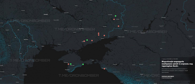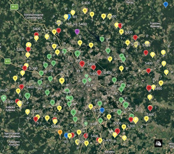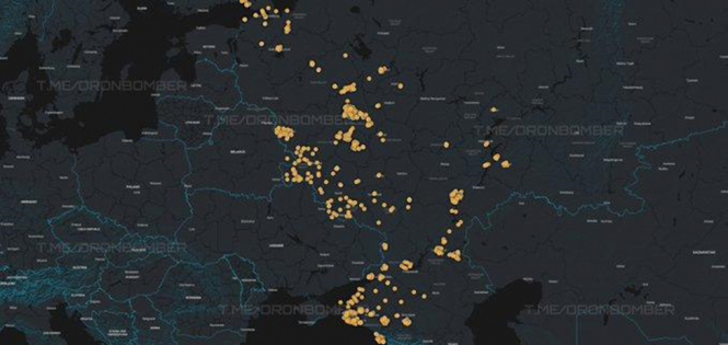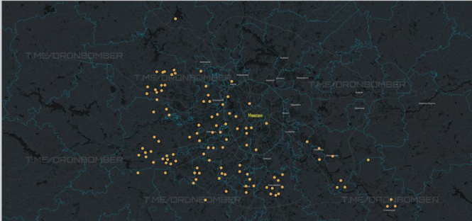 Карта, яка показує місця розташування всіх перехоплених українських дронів у Московській області протягом березня. Це буде використано для планування майбутніх атак на Московський регіон.