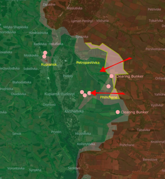Куп'янськ. Після просування на південь від Піщаного позаминулого тижня, росія минулого тижня просунулася в село і на північ від нього, дорогою зачищаючи укріплення. Від лінії фронту й річки Оскіл його відділяє десять кілометрів. У міру скорочення периметра оборонятися на схід від річки ставатиме дедалі важче.