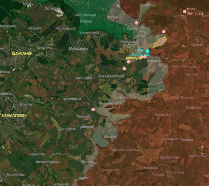 Слов'янськ. росія все ще повільно просувається на захід від Калеників.
