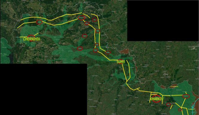 Більшість українських позицій відведено від кордону, а попереду розташовано лише окремі спостережні пункти. російське просування на схід від Сум – це зайняття саме цієї "сірої зони". Хоча бойове виснаження низької інтенсивності триває постійно, на півночі немає достатньої кількості російських сил для масштабних наступальних операцій.