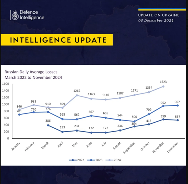 Такі темпи втрат є неприйнятними. Кілька днів тому джерела в НАТО повідомили, що росія генерує 30 000 солдатів щомісяця. Це число широко використовується протягом більшої частини 2024 року. Якщо росія втратить 45 000 – це буде історія відносної (і відносно швидкої) деградації. Це поставить росію на шлях ослаблення.