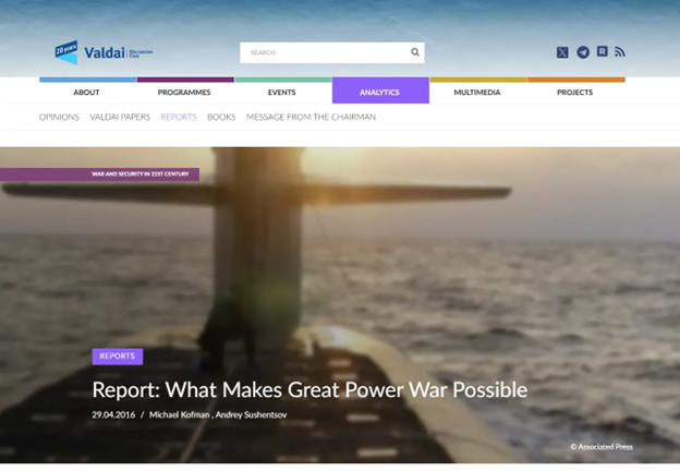 Саме тому російський контроль над ними, отриманий завдяки підтримці режиму Асада, розглядався путіним як такий важливий крок. Дії росії в Сирії були ключовими для загального наративу про те, що рф є великою державою, який циркулює вже майже десять років. росія нібито відточувала свій великий військовий потенціал у Сирії і, зробивши режим Асада залежним від неї, розширила свій глобальний вплив у потужний спосіб. Якщо ви хочете побачити, наскільки важливою була Сирія в російському світогляді, зазирніть (якщо у вас вистачить сміливості) в деякі публікації Валдайського клубу (неймовірно добре фінансованого власного аналітичного центру путіна, який просуває його наратив). Публікації "Валдаю" регулярно обговорювали, наскільки приголомшливою була операція росії в Сирії і якою великою державою є росія. Всі ці теми пов'язані між собою, наприклад, у статті, опублікованій Майклом Кофманом і Андрєєм Сушенцовим для "Валдаю", в якій статус великої держави росії чітко прописаний у назві.