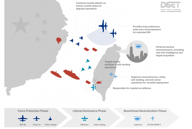Використання дронів для оборони Тайваню. Джерело: Науково-дослідний інститут демократії, суспільства та нових технологій (DSET)