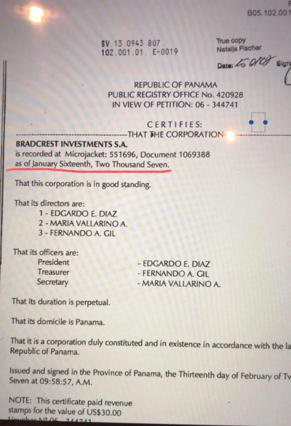 "НАБУ отримало на "швейцарській флешці" виписку із державного реєстру Панами. Проте НАБУ і САП вдаються до маніпуляцій: в українському перекладі цієї виписки (том №22) немає дати створення "Бредкресту" - 16 січня. А в іноземній версії виписки – є. Тобто, факти підганялись під сфабриковані звинувачення проти Мартиненка", - цитує адвоката прес-служба екс-депутата, яка поширила відповідні документи.