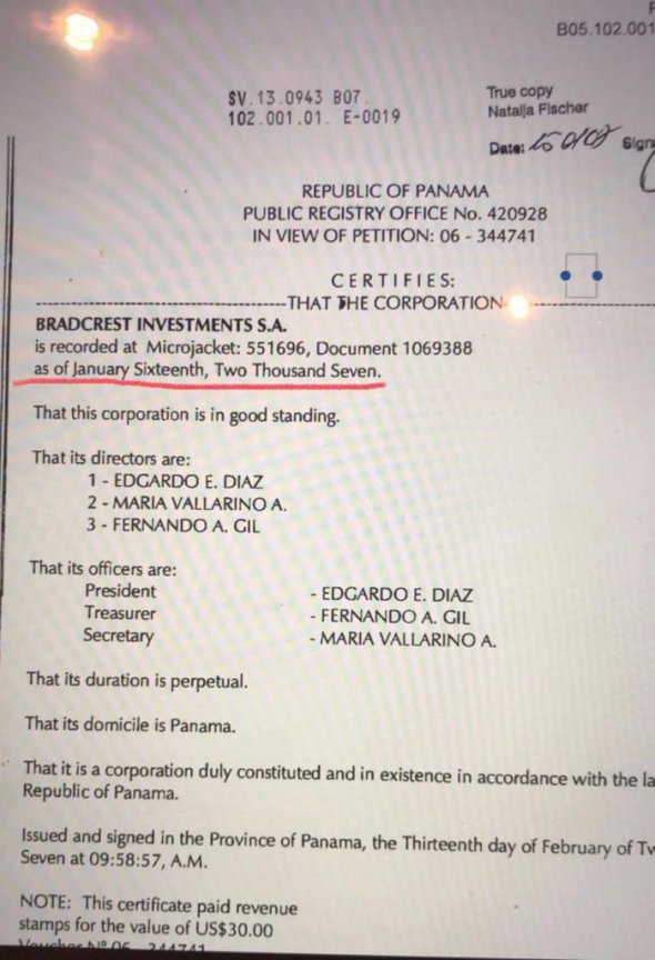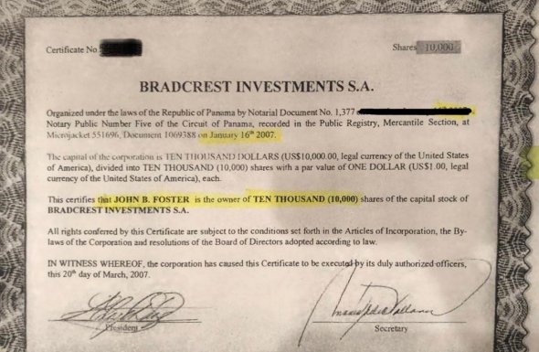 "НАБУ у відповідь на свій запит отримало від панамської влади офіційний документ, який де-факто спростовує фігурування Миколи Мартиненка. Там вказано, що бенефіціаром і власником "Бредкресту" був Джон Фостер (John B.Foster). Крім того, в установчому договорі про її створення від 16 січня 2007 р. ніколи не було прізвища Мартиненка. Навіть іноземний свідок з боку НАБУ Наталя Фішер у відповідь на запит про власника "Бредкресту" назвала Джона Фостера", - відзначили в екс-депутата.