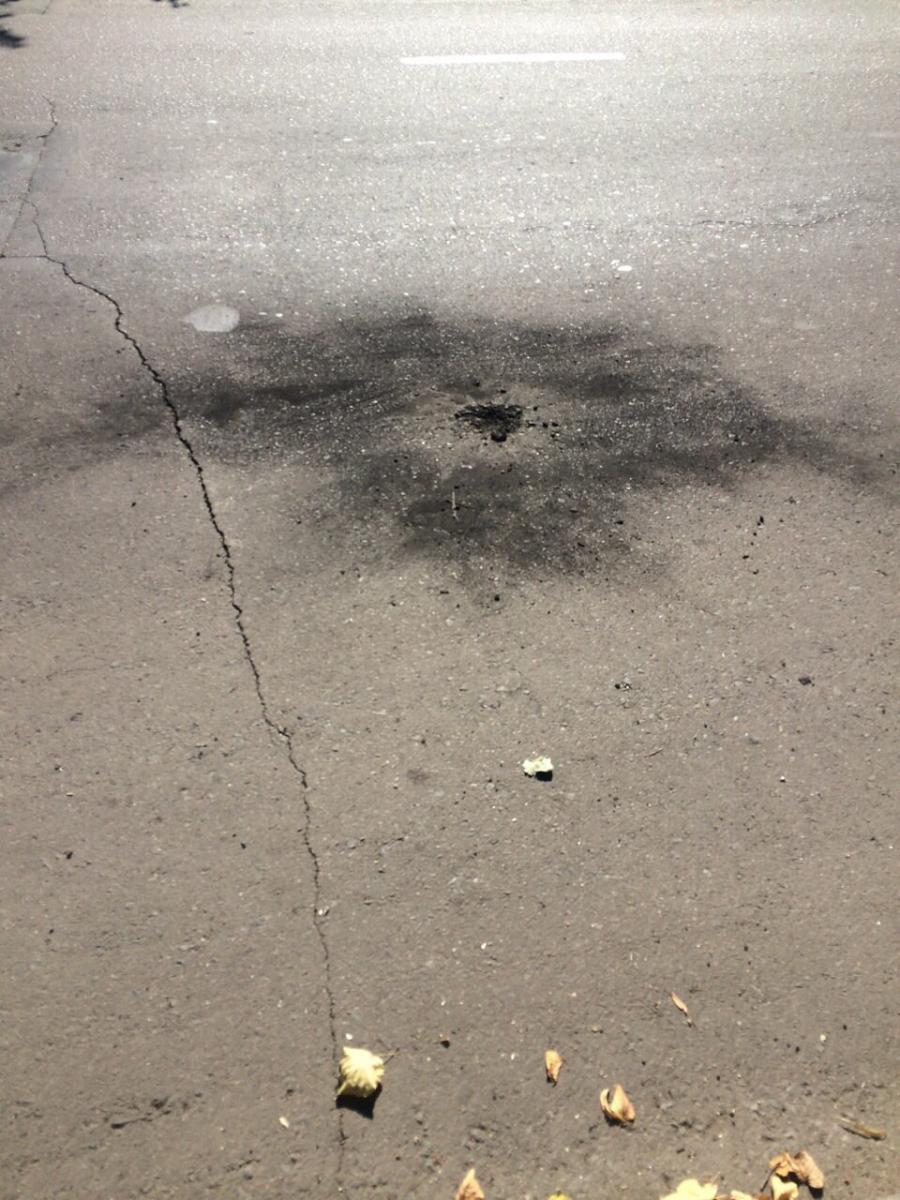 У прес-службі також повідомили, що на дорожньому полотні проїзної частини вулиці Герасима Кондратьєва, на протилежному боці від приміщення Сумської місцевої прокуратури, ближче до навчального виховного комплексу "Просперітас" (на відстані 18 метрів від кута приміщення прокуратури), виявлено пошкодження діаметром близько 15 см та глибиною 2 см.
