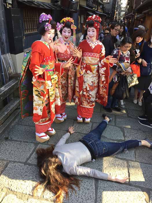 Стефані "вмирала" біля мосту "Золоті ворота" в Сан-Франциско, біля Ейфелевої вежі і Лувру в Парижі, біля Букінгемського палацу в Лондоні та інших популярних у туристів місцях.