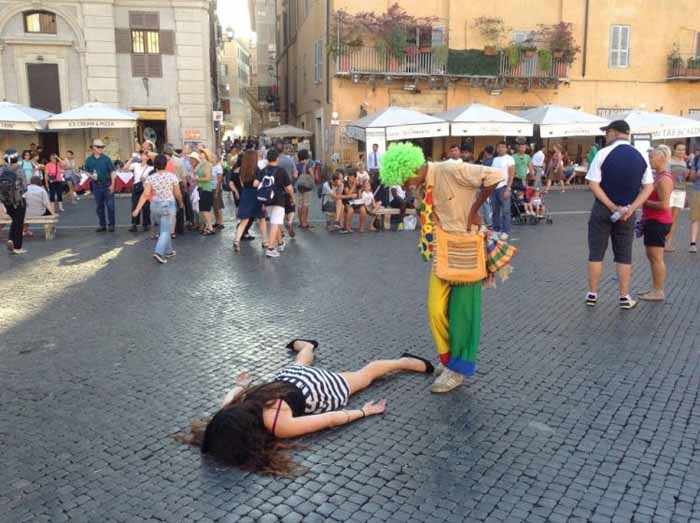 На відміну від більшості людей, які роблять життєрадісні селфі на тлі визначних пам'яток, Стефані Лей Роуз лягає на землю обличчям вниз і робить вигляд, що померла, поки її фотографують.