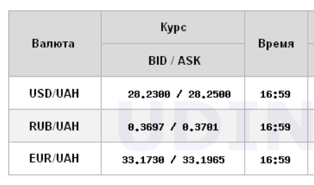 Сьогодні торги по долару закрилися в діапазоні 28,2300 - 28,2500 грн/долар, євро 33,1730 - 33,1965 грн/євро, російський рубль 0,3730 - 0,3701 грн/рубль.