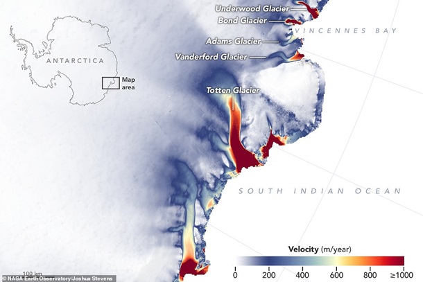 Найкритичнішою точкою материка є південно-східна, де одночасно активними темпами тануть відразу п'ять льодовиків. Одним з них є Тоттен, який визнаний одним з найбільших в світі. У разі, якщо він повністю розтане, рівень світового океану може піднятися більш ніж на три метри, повідомляє The Daily Mail.