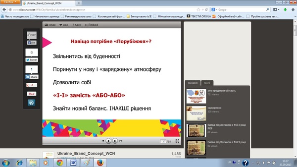 Якщо якийсь слайд вам не сподобався, або викликав неоднозначну реакцію, то, як стверджує віце-прем’єр-міністр Олександр Вілкул, ви може висловити свою думку 10-12 жовтня в Києві на Міжнародному туристичному форумі, де заплановано провести широке обговорення концепції бренду України.