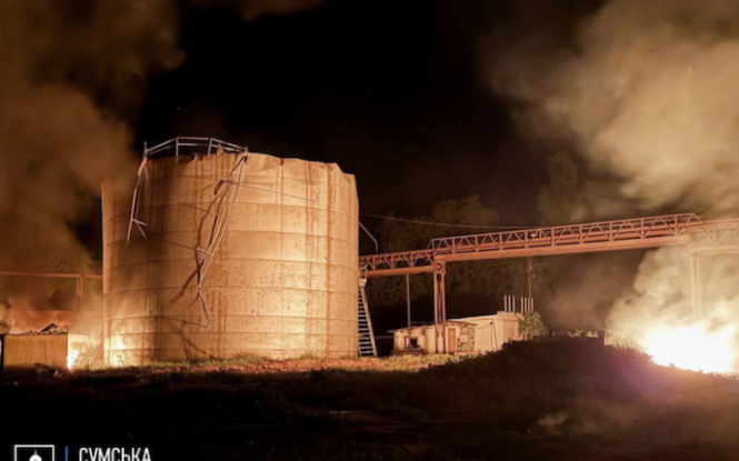 Цієї ночі росія вдарила дронами по заводу біоетанолу в Лебединській громаді Сумської області.