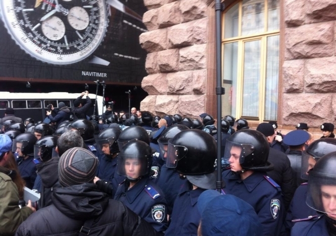 Євромітингувальники захопили КМДА: побили вікна і двері