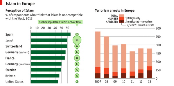 Видання також наводить інфографіку Bertelsmann Stiftung, яка демонструє відсоток населення, яке вважає іслам не сумісним із західним світом.