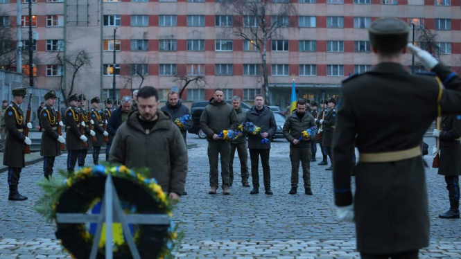 "Розпочав свій візит до Львова з найважливішого – вшанування пам'яті українських воїнів. Слава всім, хто віддав життя за нашу свободу і незалежність нашої держави! Слава Україні!", – повідомляє Зеленський у телеграмі.