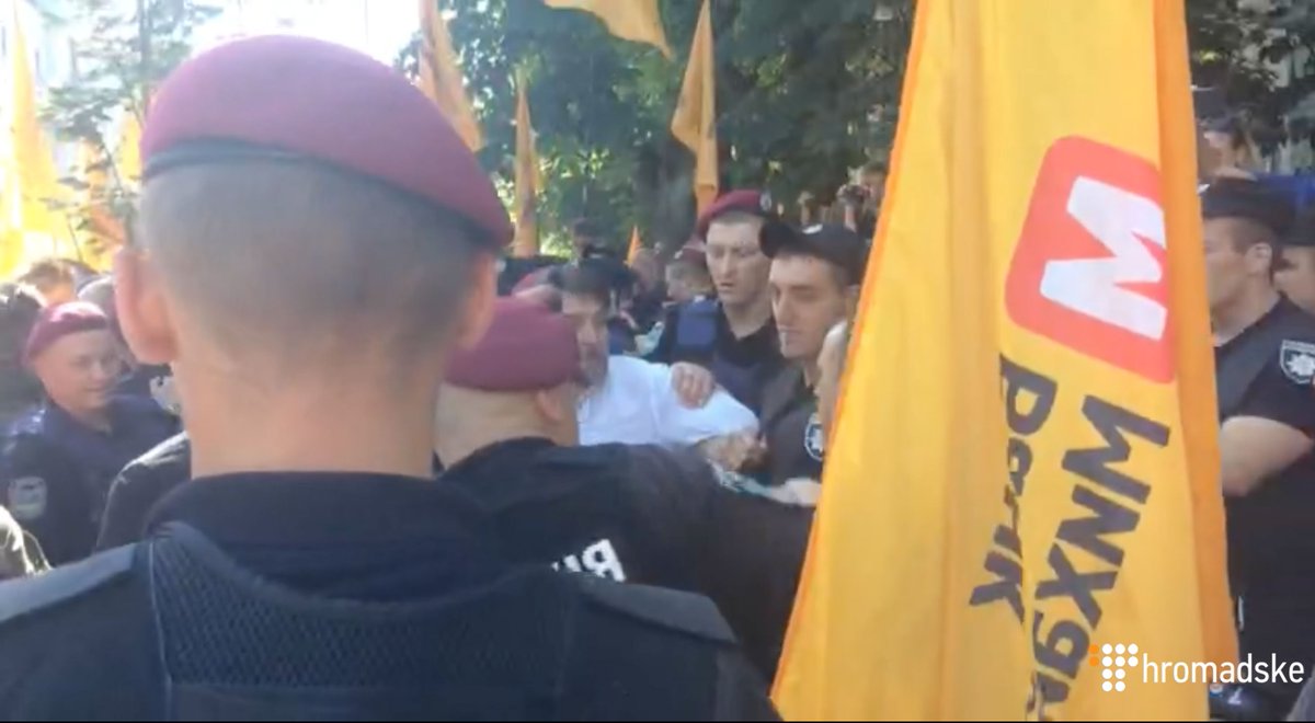 На месте присутствуют четыре кордоны полиции. Вкладчики пытались прорваться к АП, однако правоохранители перекрыли им путь. В результате между полицией и протестующими произошли столкновения, сообщает "Общественное ".
