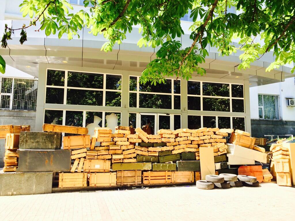 Сепаратисты в Донецке строят баррикады из ящиков из-под боеприпасов - фото