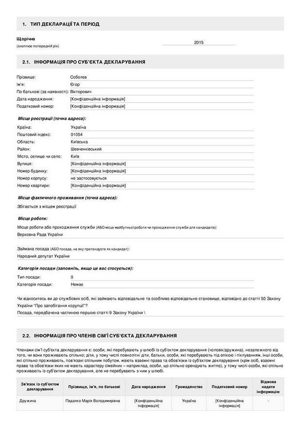 Соболев показал, как выглядят новые электронные декларации, - ФОТО