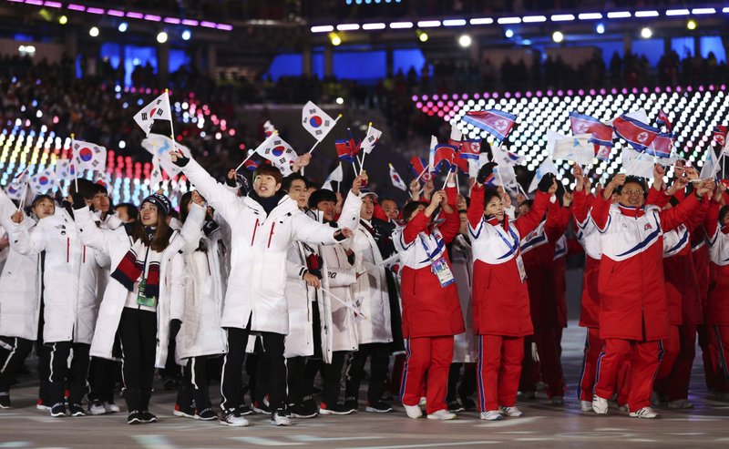 Олимпийцы Северной и Южной Кореи вышли вместе на закрытие Олимпиады-2018.